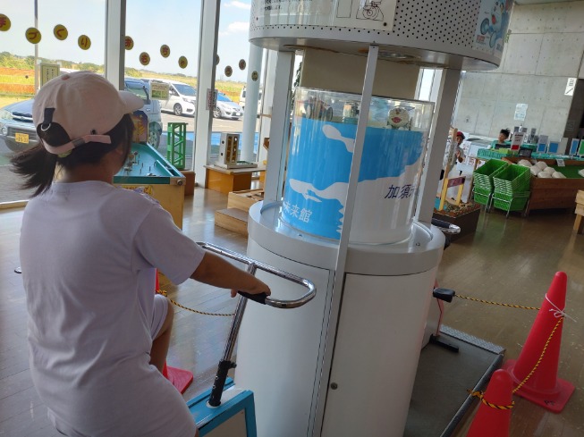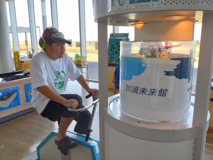 こちらでは自転車発電機で発電中!