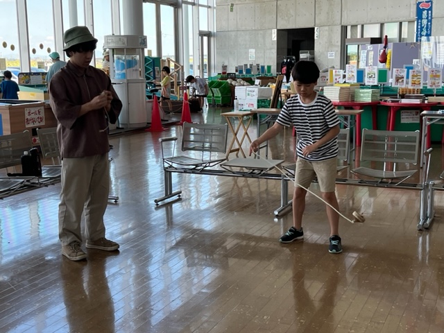 昔遊びコーナーでは竹とんぼやコマ回しなどがありました!